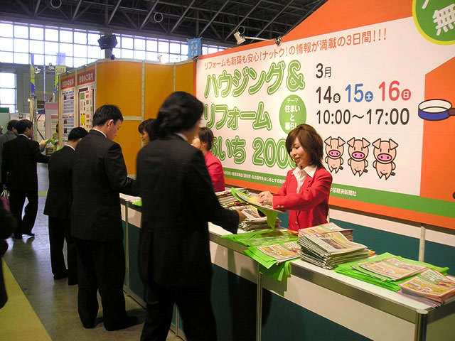 おかげさまで、ハウジング&リフォームあいち2008は、合計で31,300人の方にご来場いただき、盛況のうちに終了することができました。今後も同展を充実させてまいりますので、皆様のご協力をお願い申し上げます。なお次回は、2009年3月中旬に、吹上ホールでの開催となります。