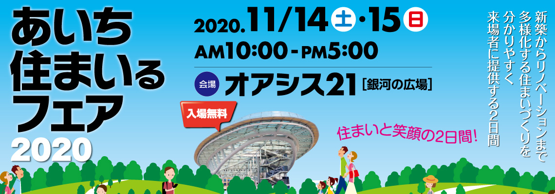 11月14日から15日まで開催いたしました「あいち住まいるフェア2020」は、無事閉幕いたしました。