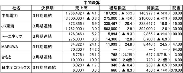 決算詳報 <3月期中間> トーエネック MARUWA きもと 日本デコラックス