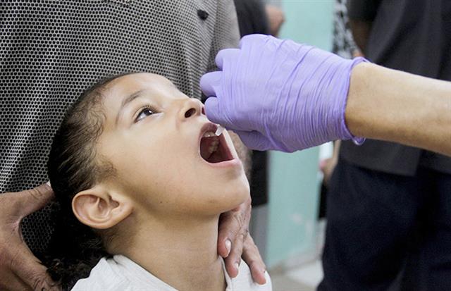 ガザ地区でポリオのワクチン接種を受ける子ども=9月(ロイター=共同)