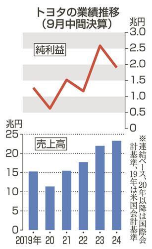 トヨタ自動車が6日発表した2024年9月中間連結決算は、純利益が前年同期比26・4%減の1兆907...