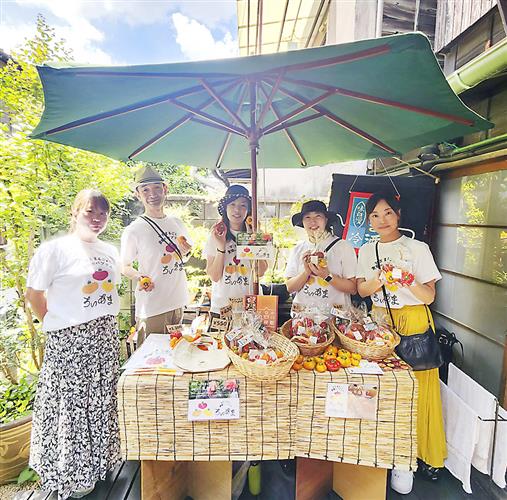 愛媛県八幡浜市の農家が栽培したパプリカを販売する「だんだん複業団」のメンバーら=東京都台東区