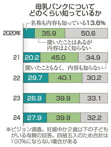 母乳バンク認知度3割弱 理解広がらず、民間調査