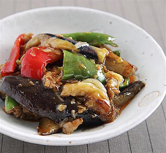 2人分でナス210グラム、ピーマン1個、赤ピーマン2分の1個、A(ニンニク4グラム、ショウガ8グラ...