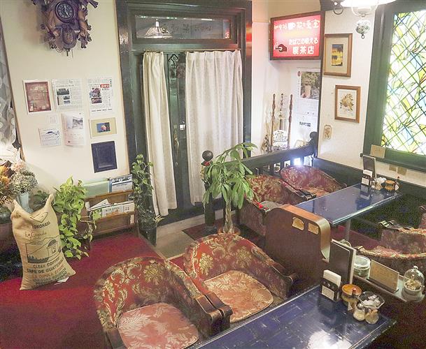「珈琲館 禁煙室」の内装を受け継いだ「喫茶 水鯨」=大阪市西区