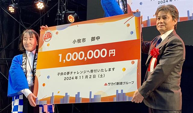 2024年11月13日の記事 60周年記念で市に寄付金 サカイ創建グループ 地元行政 尾張 ニュース 目録を手にする酒井社長(左)と川尻こども未来部長 【尾東】建設、不動産事業のサカイ創建グループ(本社小牧市三ツ渕西之坪1138、酒井俊子社長)は、同... 残り232文字/全文282文字 記事をもっと読むには・・・