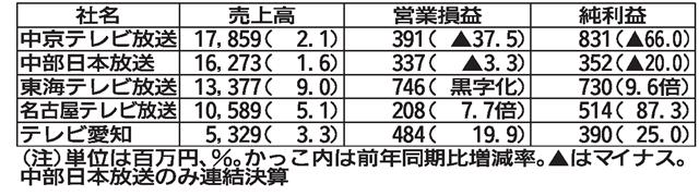 名古屋市に本社を置くテレビ局5社の2025年3月期中間(24年4~9月)決算が29日、出そろった。...