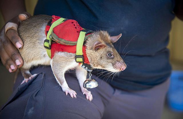 ゾウの牙などをさがす訓練を受けたアフリカオニネズミ(APOPO提供・共同)