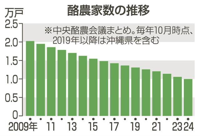 酪農家15年で半減以下 1万戸割れ、経営難深刻に