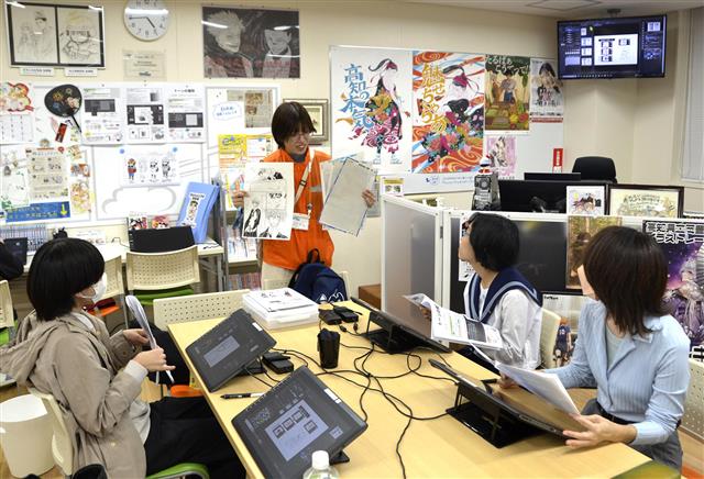 「高知まんがBASE」で、レッスンを受ける女子高校生ら