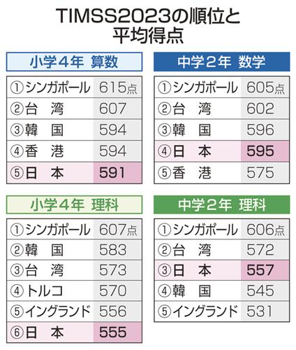 国際教育到達度評価学会(IEA)は4日、世界の小4と中2に当たる学年を対象とした2023年国際数学...