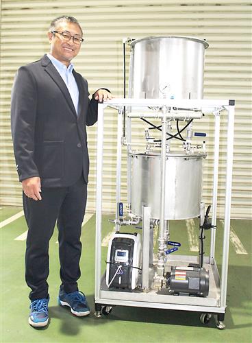 工場設備の製造などを手掛ける永田工作所(本社刈谷市一里山町北本山108の2、永賀多(ながた)優志社長、電話0566・61・8882)は、二酸化炭素(CO2)をコンクリートに封じ込める技術を開発した。専用装置を使って水の中にCO2を溶かし、その水溶液でコンクリートをつくる仕組み。従来にはない技術として特許を出願した。カーボンニュートラル(温室効果ガスの排出量実質ゼロ)に貢献する技術として実用化を目指す。