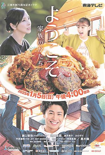 【尾張】江南市の市制70周年記念ドラマ「ようこそ~家族のかたち~」が2025年1月5日、東海テレビで放送される。放送時間は午後4時~5時25分。ドラマ制作には企業版ふるさと納税による寄付金などを活用した。