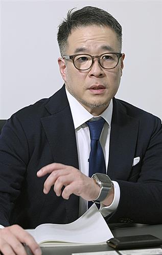 インタビューに答える船井電機前社長の上田智一氏=12日、東京都内