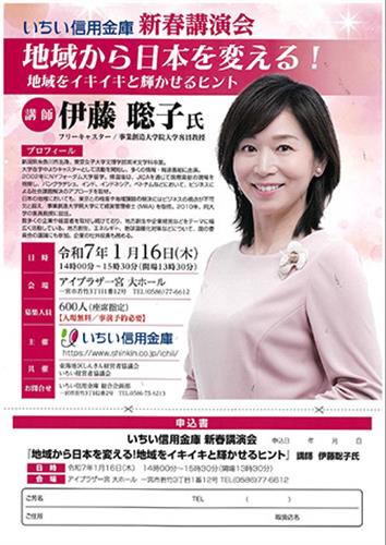 来月16日に新春講演会 いちい信金、講師に伊藤聡子氏