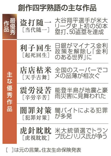 24年の創作四字熟語最優秀作品 大谷50―50で「盗打随一」 住友生命
