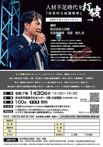 多治見会議所が講演会 来月、八百鮮社長が「組織戦略」テーマに