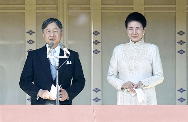 新年一般参賀で、皇后さまと並びあいさつされる天皇陛下=2日午前、宮殿・長和殿