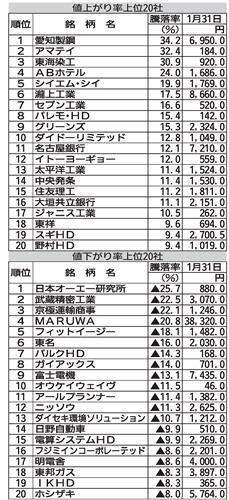 名証上場企業292社 1月の株価騰落率 5割が値上がり 値上がり1位は愛知製鋼