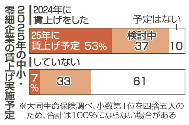 2024年に賃金の引き上げを実施した全国の中小企業約3千社のうち53%が25年も賃上げを予定してい...