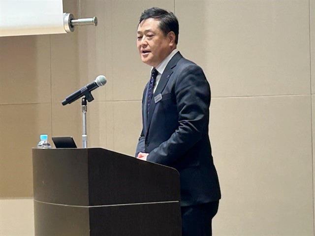 あいさつする渡邉社長