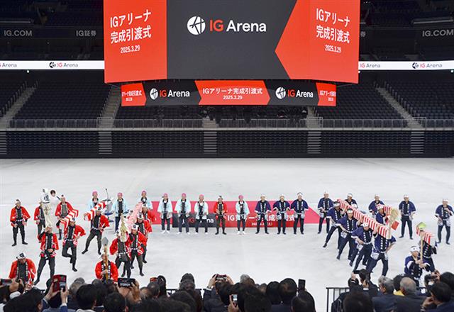 完成した「IGアリーナ」の引き渡し式=29日午後、名古屋市