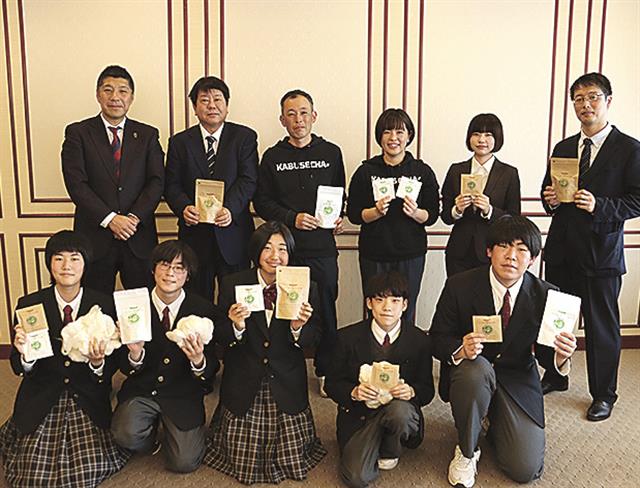 御幸毛織 四日市市長を表敬訪問 「ウールで育てたお茶」を完成報告