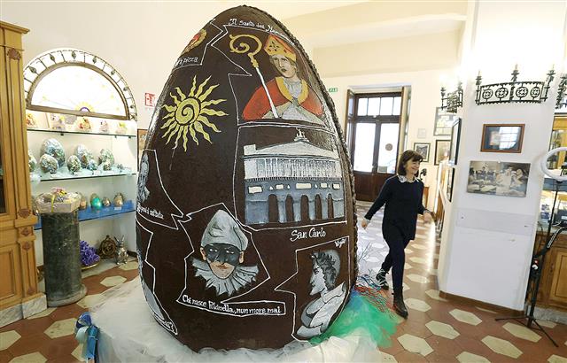 イタリア・ナポリのチョコレート工場で作られた巨大なイースターエッグ。重さ350キロになるとか。(ロイ...