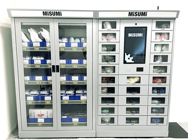 自販機の形式で手袋など間接材を必要な時に利用できる