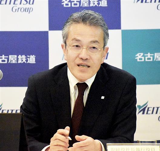 記者会見した名鉄の高崎社長(8日、名古屋市内のホテルで)