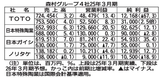 森村G4社前3月期 3社が最終増益 ノリタケ 食器事業17年ぶり黒字化