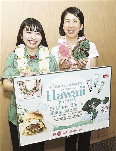 2025年5月17日の記事 きょうからハワイフェア キャラバン隊が本社来訪 ジェイアール名古屋タカシマヤで9日間 名古屋 ニュース ハワイフェアをアピールする成田マネージャー(右)と安藤セクションチーフ ジェイアール名古屋タカシマヤ(名古屋市中村区)は17日、ハワイに関する食と雑貨、衣料などを集めた物... 残り297文字/全文347文字 記事をもっと読むには・・・