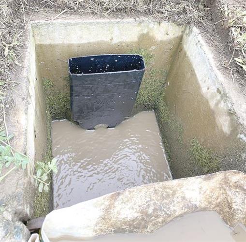 ラクダムは、水田の排水桝に差し込むと水路への排水を調整する