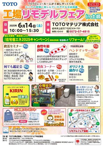 【東濃】TOTOマテリア本社・土岐工場は14日午前10時から、土岐市下石町の同工場で「工場リモデル...