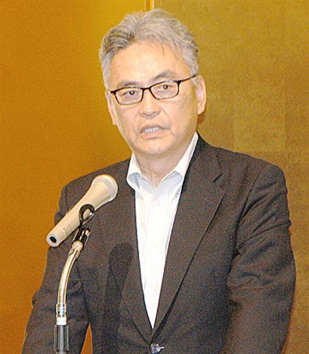 あいさつする高柳社長