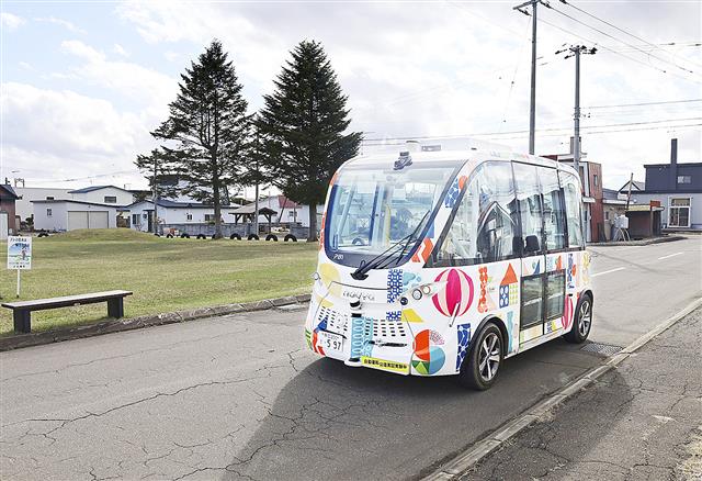 北海道上士幌町を循環する自動運転バス=4月