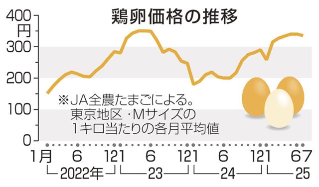 JA全農たまごは9日、鶏卵価格の目安となる卸売価格(東京地区、Mサイズ)が1キロ当たり335円だっ...
