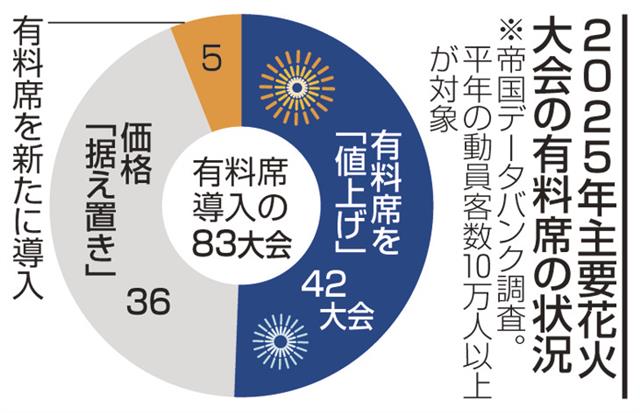 有料席、値上げ半数超、運営費や人件費上昇 25年の主要花火大会