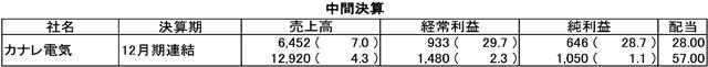 (注)単位は百万円、%。配当は円。かっこ内は前期比増減率。上段は中間期実績、下段は通期見通し。配当の下段は年間配当