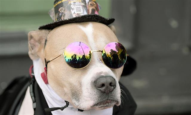 英バーミンガムで、ミュージシャン、オジー・オズボーンさんの葬列を待つ犬。〝正装〟で見送ります。(ゲッ...