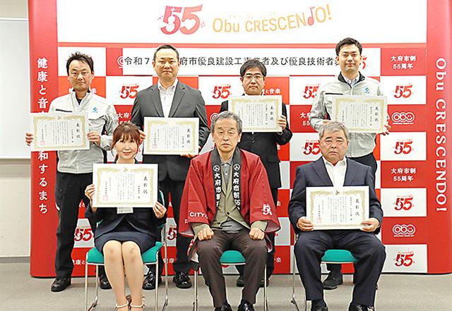 【半田】大府市は7月30日、同市役所で優良建設工事の市内事業者と優良技術者の表彰式を開いた。