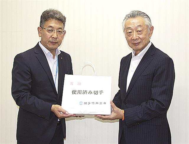 【半田】知多信用金庫は7月31日、約3・1キログラムの使用済み切手約2万1700枚を半田市社会福祉...