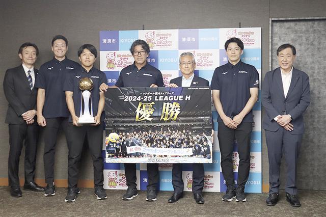 【尾張】豊田合成のハンドボールチーム「豊田合成ブルーファルコン名古屋」は7月31日、清須市の永田純夫市長を表敬訪問し、国内トップリーグ「2024―25 リーグH(旧日本リーグ)」での優勝を報告した。