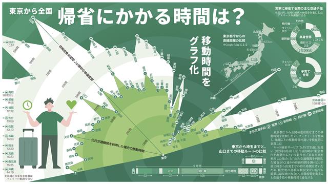 図でナビ 東京から全国、帰省にかかる時間は? 地図には見えない移動時間 公共交通利用、山口が最長 インフラの差が影響