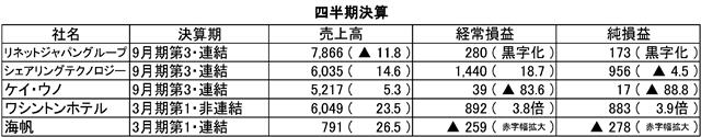四半期決算 リネットジャパングループ シェアリングテクノロジー ケイ・ウノ ワシントンホテル 海帆