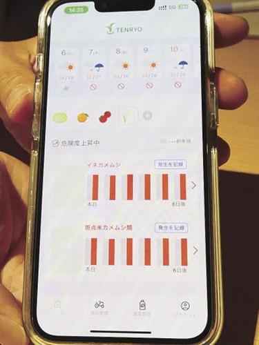農業向けデジタルトランスフォーメーション(DX)事業を手掛けるミライ菜園(本社名古屋市昭和区・ステーションAi内、畠山友史代表取締役、電話090・7575・6083)は、農作物への病害虫発生を予測するアプリ「TENRYO(テンリョー)」シリーズで、個人農家向けの提供を始めた。猛暑で大量発生が懸念されるイネ害虫の防除にも対応する。同アプリはこれまで農協や農業法人など団体向けに提供し、病害虫被害の拡大防止に寄与してきた。今回は個人向けで年内1万ダウンロードを目標に利用者数拡大と、予測精度の向上を目指す。