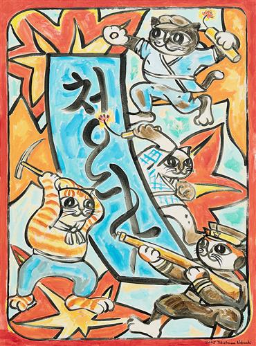 アートな生きもの 竹川宣彰「猫の足尾銅山花闘」 軽やかさこそが真骨頂