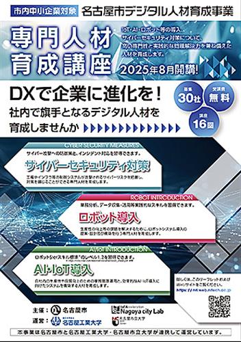 名古屋市は25日から、市内中小企業を対象に「専門人材育成講座」を開講する。名古屋市昭和区の名古屋工...