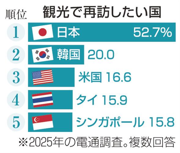 再訪したい国、日本首位 電通調べ、食や製品に関心