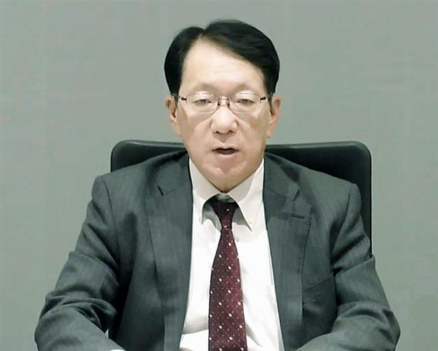 オンラインで記者会見する三菱自動車の加藤隆雄社長=27日午後